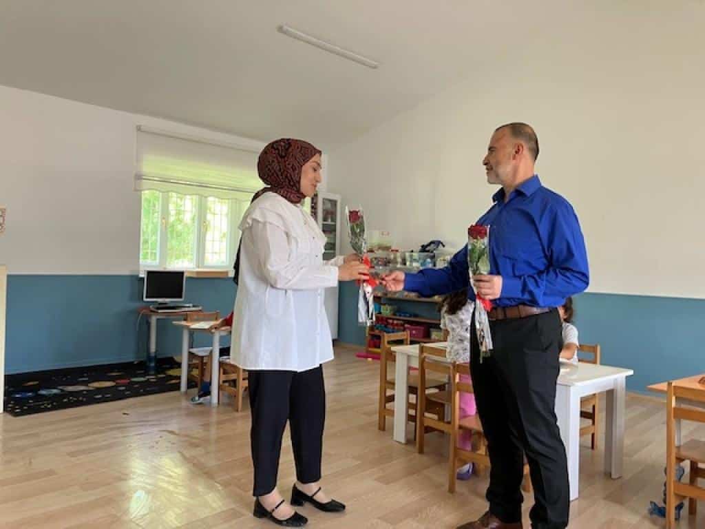 Anneler Günü münasebetiyle okulumuzda kutlama programı yapıldı. Okul Müdürümüz Abdulhakim Hazır, okulumuzun çok değerli annelerine sürpriz yaparak tek tek çiçek takdim etti ve hepsinin anneler gününü kutladı. Onlara özel; pasta yaptırıp birlik, beraberlik ve mutluluğun verdiği coşkuyla bir günümüzü daha huzurlu bitirmenin kıvancını hissettik. Bu vesile ile tüm annelerimizin anneler gününü kutluyoruz. Annelerimiz, iyi ki varsınız!